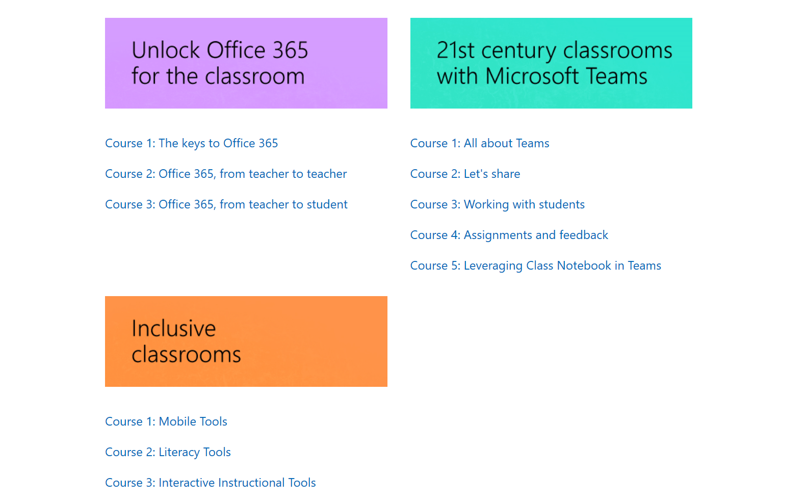 Want to get started learning on your own? Check out our Microsoft Educator Community with over 70 courses and dozens of resources to help you get started on how to integrate tools into your teaching. Some great collections to get you started are: