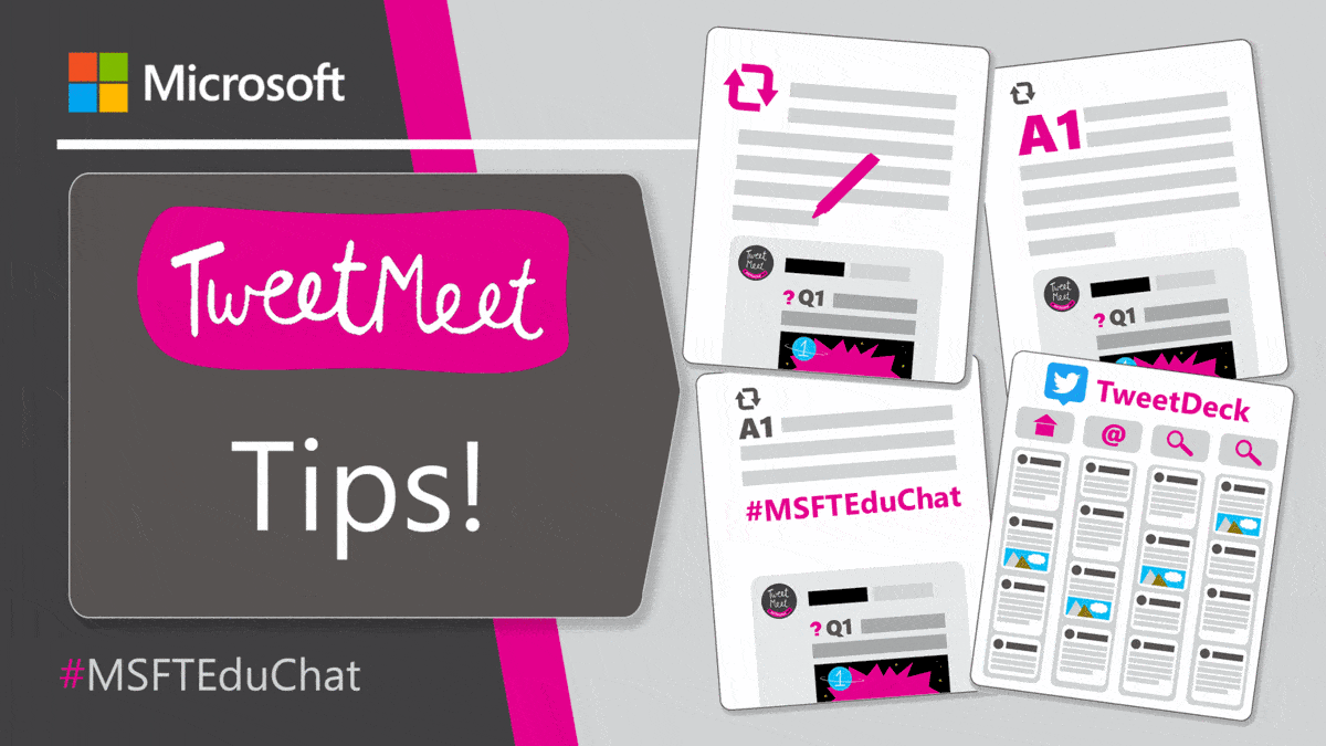 TweetMeets are monthly recurring Twitter conversations about themes relevant to educators, facilitated by Microsoft Education. The purpose of these events is to help professionals in education learn from each other and inspire their students while they are preparing for their future. The TweetMeets also nurture personal-learning networks among educators from across the globe.