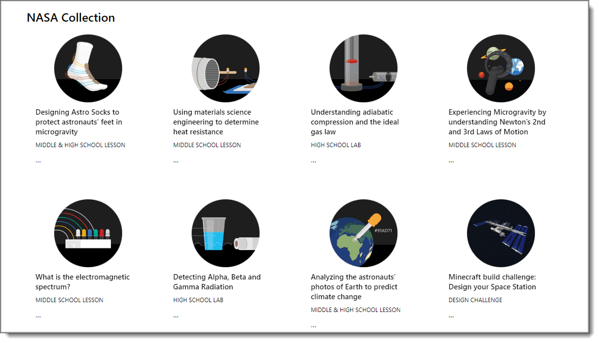 Next year marks the 20th anniversary of humans continuously living aboard the International Space Station (ISS). In celebration, the Microsoft Hacking STEM team (@Hacking_STEM) has partnered with NASA’s STEM on Station team @NASASTEM to design eight exciting STEM lesson plans targeted at middle and high school students. Each activity in the NASA collection focuses on the challenges that astronauts face while living in space. For example, students learn what it means to experience microgravity and to detect radiation.