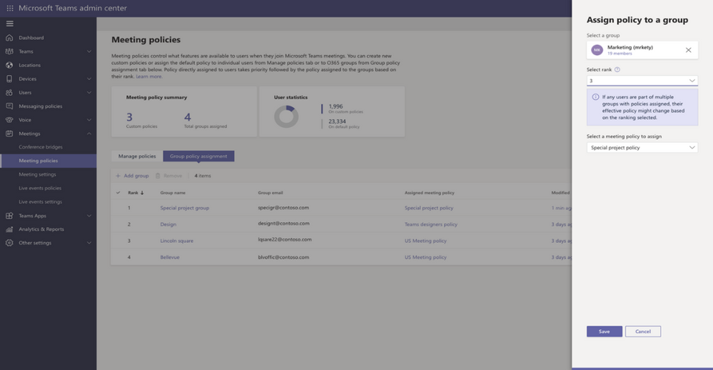 Using Group policy assignment, IT Admins can save time and reduce the complexity of managing groups of students or faculty. Instead of changes done student-by-student or in batches, IT Admins will be able to use groups (first-graders or fifth-graders, for example) and implement multiple policy definitions at the same time. If a user is in more than one group, the order that the policies take effect can be ranked. This is great for users who may have mixed roles, such as a university student who is also a part-time employee at their university. And there’s no script involved! The starting six policies (Calling, Call Park, Channel, Meeting, Messaging, Meeting Broadcast) will be available in the Microsoft Teams Admin Center. Read more about group policy assignment and ranking.