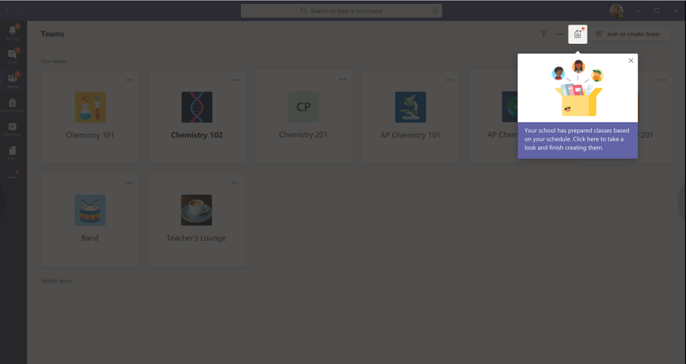Educator-led team creation is another great deployment option that alleviates work for educators while still granting them control over which classes they want to create and use. Admins can create M365 groups for classes based on student and educator roster information, and the educator will be notified of their suggested class teams. The educator can then decide whether or not to create teams for their suggested classes. This provides flexibility and prevents class teams from being automatically created and turned on when they aren’t needed. This solution is recommended for large tenants (>500,000 teams). To learn more about this feature, please visit the Create a team from suggested class tab.