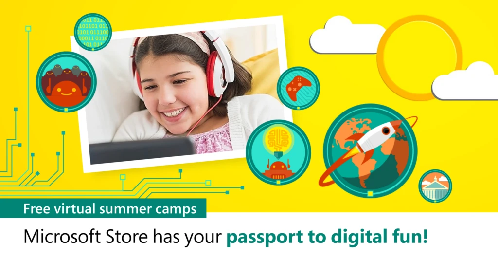 With families in mind, Microsoft created Passport to Digital Fun, a free, virtual summer camp with weeks of interactive workshops. To spark your student’s curiosity and continue their education over the summer, campers will receive a stamp to add to their digital passport each time they complete a workshop. This allows them to document their summer learning journey as they travel through different experiences and master various skill sets.