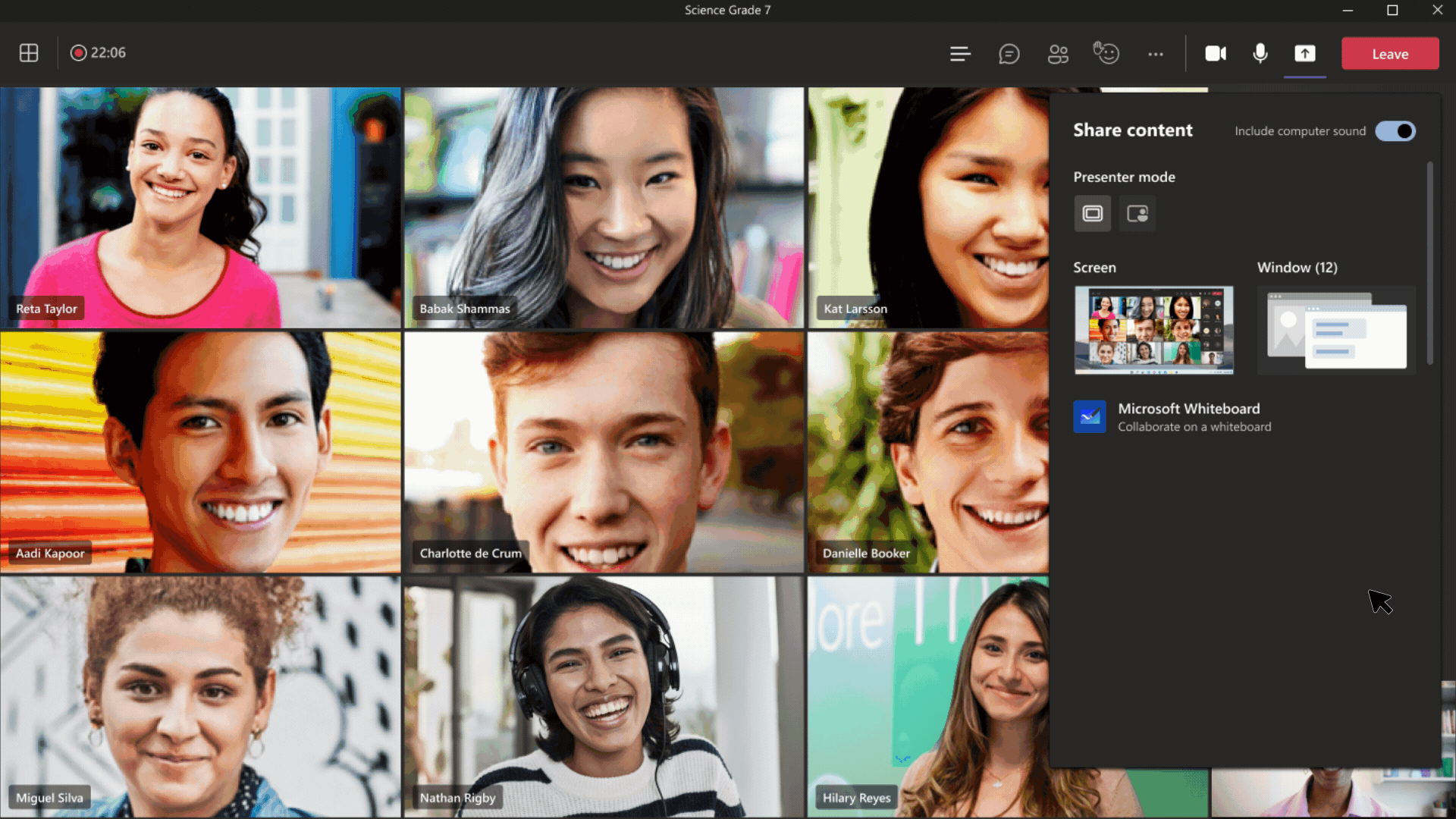 Whether brainstorming on the fly or creating a rich and interactive lesson, Whiteboard—built directly into Teams—will offer more ways to add fun and engaging content to class materials. Coming in late August, educators and students can use annotation features to add digital ink, highlighters, stickers, sticky notes, and text boxes for special emphasis. For a more guided experience, you can lock your students’ view so that they only see what you see.