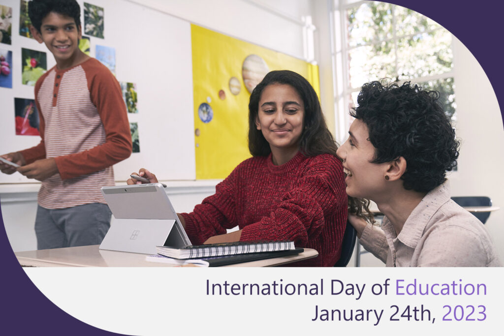 Education unlocks the potential in everyone, so everyone should have access to it. In a statement3 in support of this year’s Day of Education theme, UNESCO makes the point that, “Only lifelong education starting in the earliest years in life can break the cycle of poverty, improve health outcomes, prepare people for decent jobs with opportunities to reskill and upskill, and mitigate the climate crisis.” The message continues, pointing out that, “to ensure inclusive, safe, and healthy learning environments [we must] empower teachers, harness the digital revolution for the benefit of public education and invest more equitably and efficiently.”
