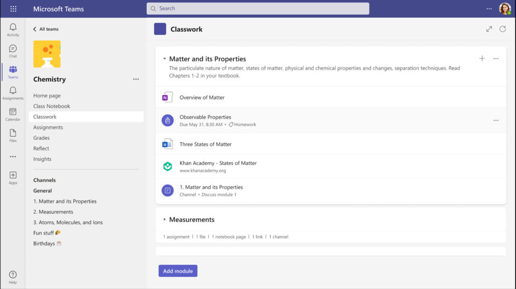 Teams for Education is about to get even easier to use with the upcoming release of the new Classwork app! Classwork is specifically designed for educators to simplify the task of managing their curriculum. This app offers educators a one-stop shop to access all their teaching materials, and in the future, effortlessly reuse class content. With Classwork, educators can create and organize various class resources, such as assignments, files, links, channels, Class Notebook pages, and more.