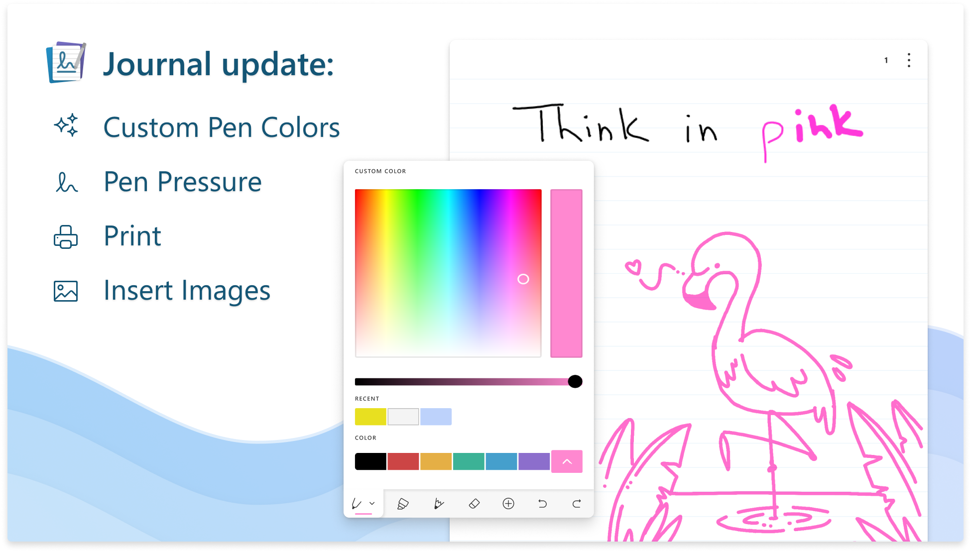 - Custom ink colors Tap the pen or pencil to reveal the new custom color picker you can choose