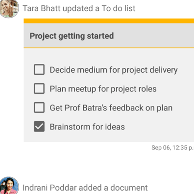 - Activity board: Every group gets an activity board to track all the important stuff together. The board offers a bird’s eye view of the groups’ key activities