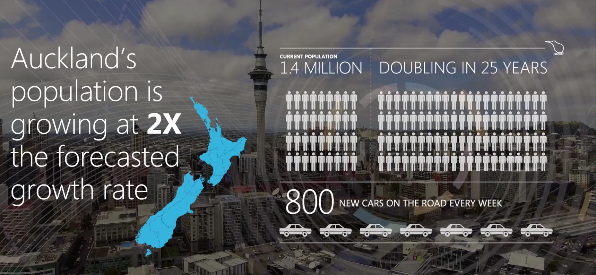 While Auckland Transport delivers 83 million public transport trips per year, it also sees room for improvement since the number of new cars on the road per week is outstripping the growth of residents in Auckland. 78% of all commuters travel by car, 95% without passengers. Lastly, as the number of cars increases, 30%+ of congestion gets created by drivers looking for parking.