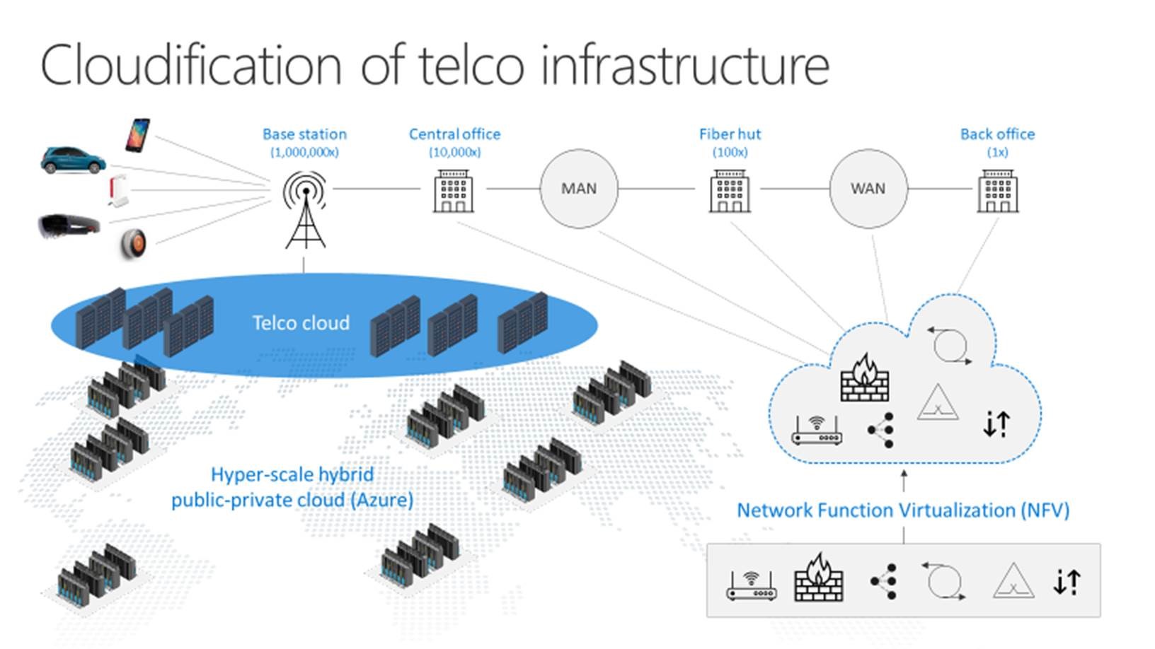 This Virtual Infrastructure, often referred to as Network Function Virtualization (NFV) for Telco Core Network use is a very non-traditional model for Telecommunications companies. The environment that is being considered by most telecommunications companies, like many Enterprises, is a hybrid virtual infrastructure environment, where a “Telco Cloud” infrastructure will do much of the legwork over the network – the difference from traditional here, is no longer will the Telcos have to scale and operate each application. Functions that are ‘Cloud Aware’ can leverage the NFV, creating a Software defined environment that is easier to operate, and cheaper to scale. If you haven’t heard yet, Azure is a complete solution.