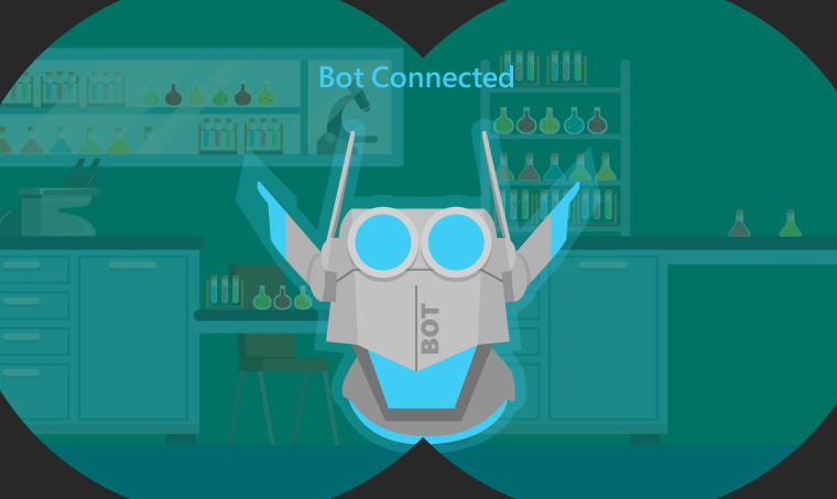 However, Megan is actually using a HoloLens, a wearable device that allows her to interact with a smart bot to troubleshoot and solve problems in real time. The bot gives her access to standard operation procedures and important information to help her follow compliance requirements in the lab without ever having to take her sight off the task at hand.