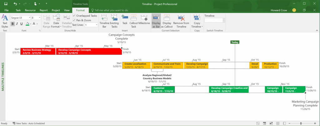 In addition to resource management, there are a host of improvements and new features to help you be more productive with Project, such as improved timelines, Tell Me integration and full support for Office add-ins.