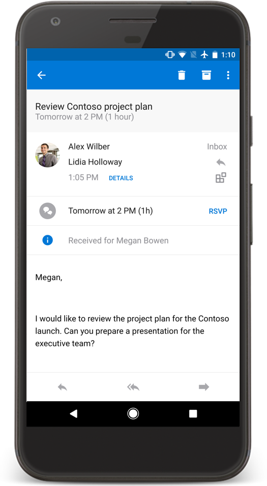 We are bringing the best of what Outlook has to offer on the web and desktop to your phone, so you can make the most of your busy day while on the go.