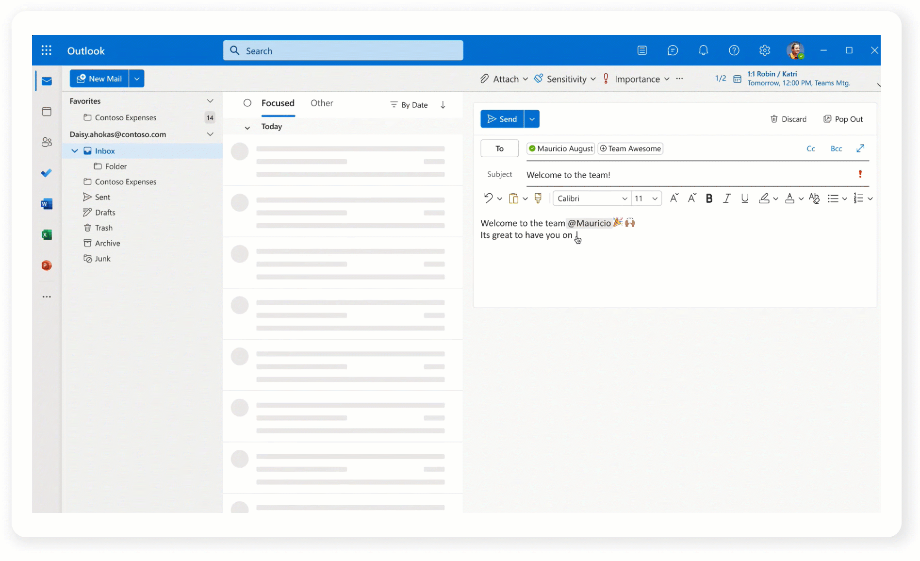 Figure 3. Get context about organizational terms, projects, or team names directly in Outlook with integrated topic cards.