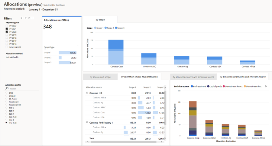 With allocations dashboard (Preview), organizations can track how they’re generating emissions by headcount, area, production type, or any method they can define. This feature allows organizations to assess how different internal metrics affect the overall emissions across their business.