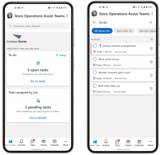 Retailers can leverage Store Operations Assist to equip store associates to better serve customers, providing teams access to advanced retail workflows, data, and insights. Today we’re introducing Store Operations Assist embedded in Microsoft Teams to make it even easier for store teams to stay in the flow of work. Store associates can easily move between Teams and Store Operations Assist through a shortcut on the Teams app bar on mobile.