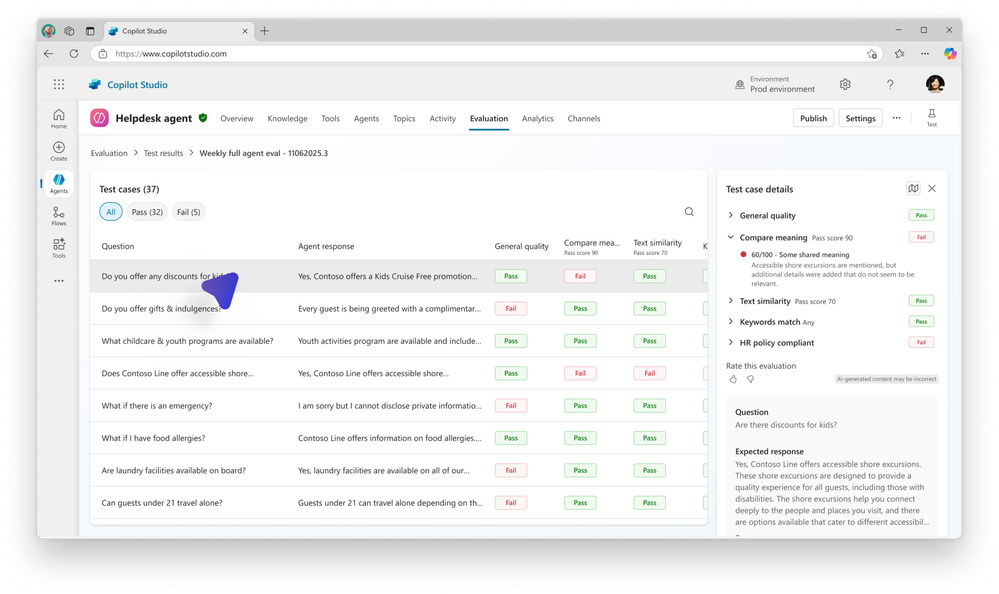 Learn how to set up Agent Evals in Microsoft Copilot Studio, so you can assess agent quality and readiness before expanding usage.