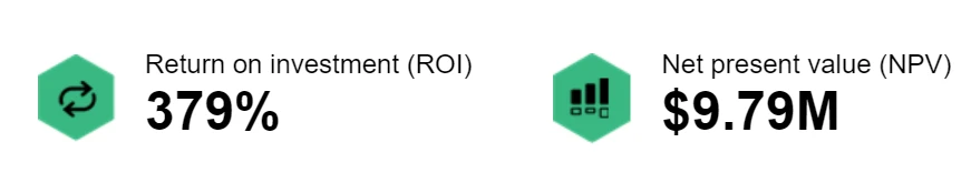 The TEI report reveals a considerable ROI of 379% for the composite organization that deployed Fabric. This figure is a testament to the significant cost savings and business benefits enabled by the solution. The net present value (NPV) of $9.79 million underscores the substantial financial gains that can be realized over time, making a strong case for the investment in Fabric from a fiscal standpoint.