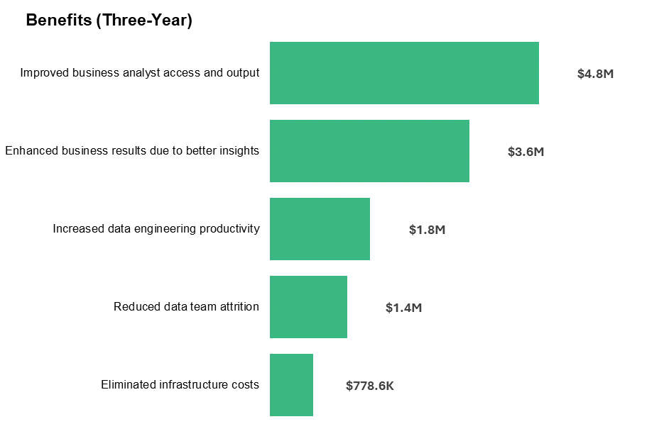 One of the standout benefits highlighted in the study is an increase in data engineering productivity of 25%. This gain stems from a 90% reduction in the time data engineers spend searching, integrating, and debugging, and translates to savings of $1.8 million for the composite organization. Furthermore, business analyst access and output are improved by 20%, leading to an additional $4.8 million in savings. These productivity enhancements not only represent direct financial benefits but also indicate a more efficient and effective approach to data management and analysis.