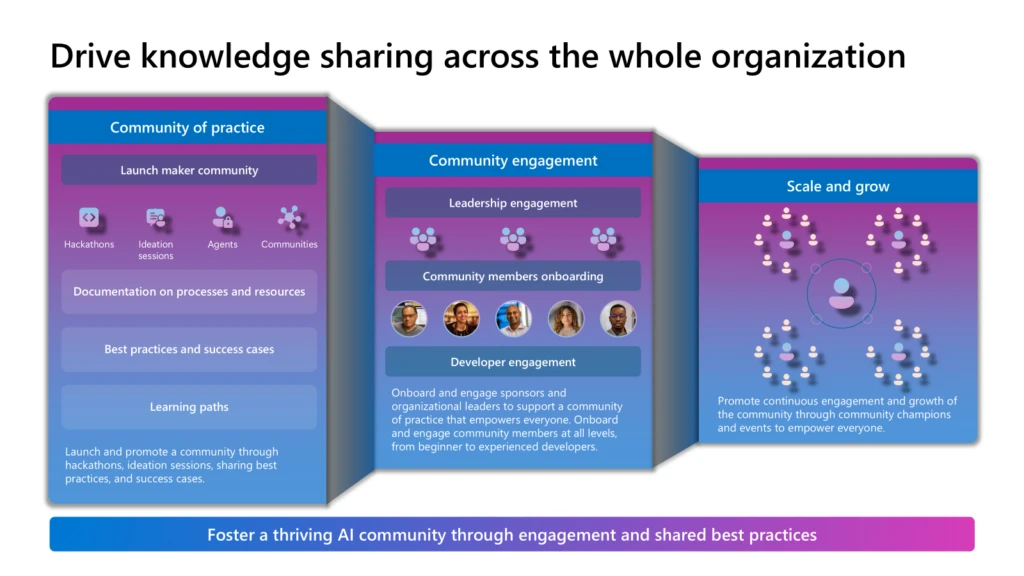 Build an active agent community hosting events such as “Agent Show-and-Tell” and hackathons. Acknowledge successful projects and appoint departmental champions to mentor others and drive adoption.