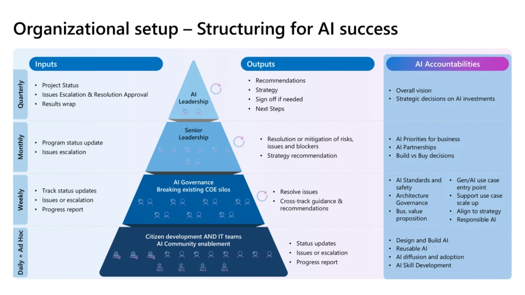 Support experimentation within a structured framework. The Center of Excellence should manage best practices, training, and governance, gathering insights to improve and scale effective approaches.