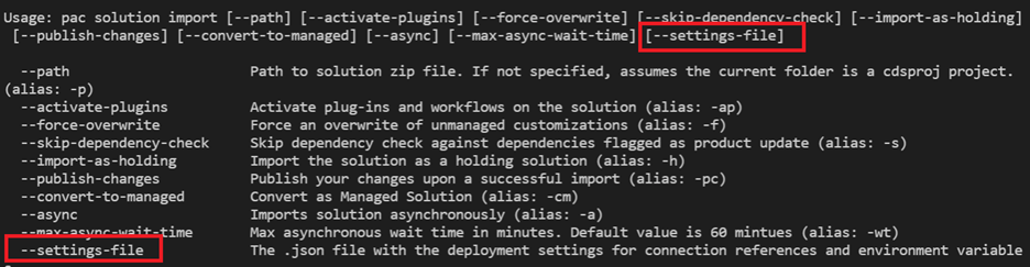 Initially, when using the create the settings files parameter, a developer had to “handcraft the json file. In this release for the public preview we are now providing the capability to generate a good majority of the json file using the command pac solution create-settings and the command will accept the solution zip file or the folder structure of a pac solution clone output and generate the deployment settings files from it.