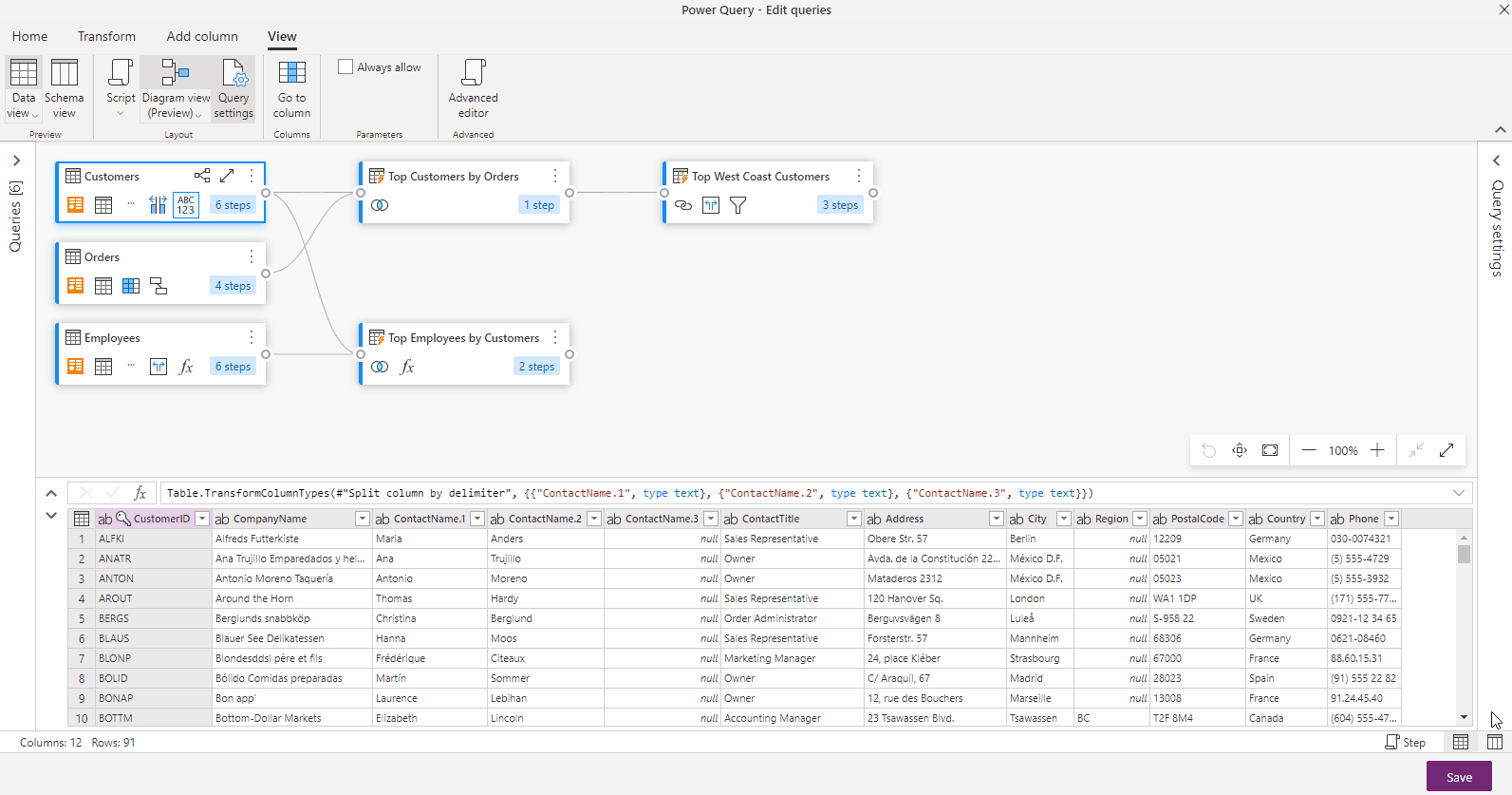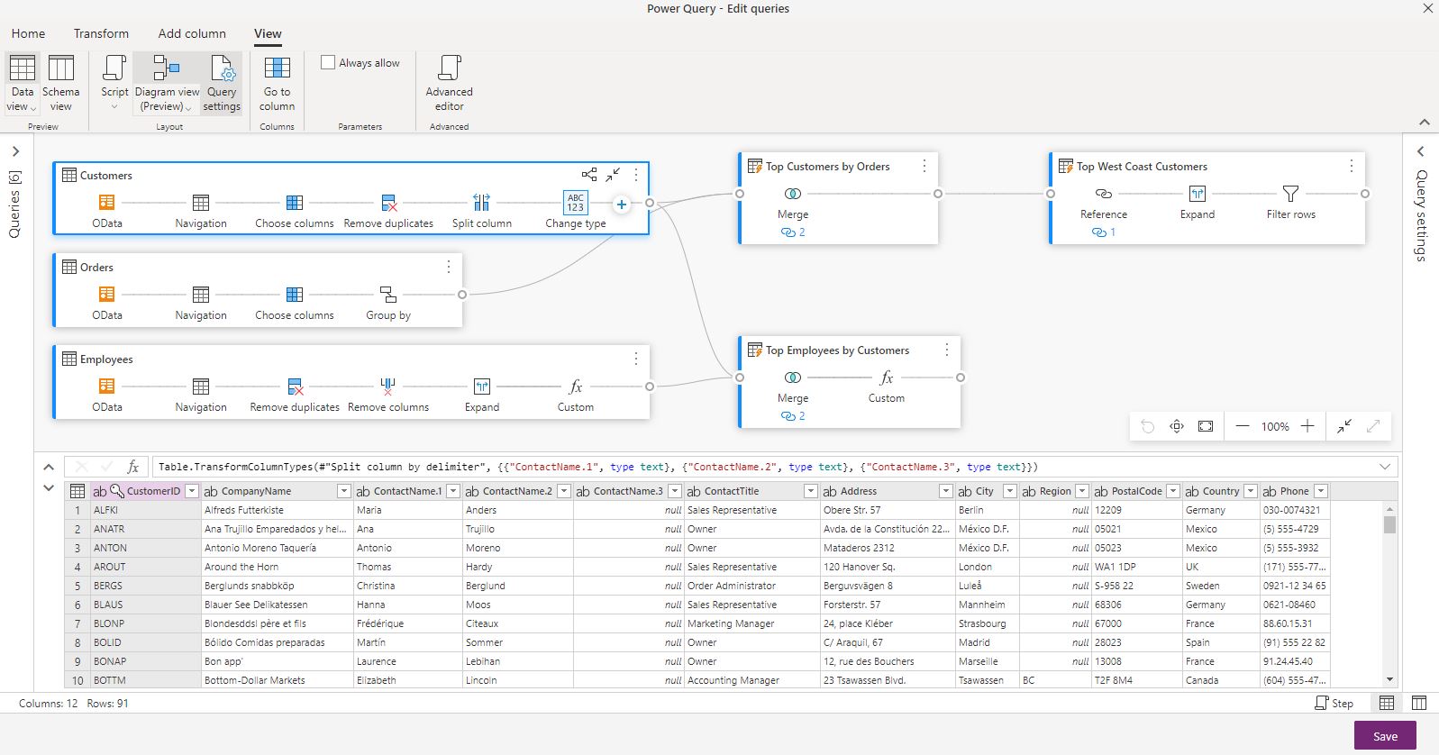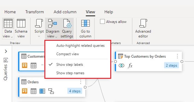 But you can change Diagram View settings to show ‘step names’ so that it matches the ‘Applied steps’ within the ‘Query settings’ pane.