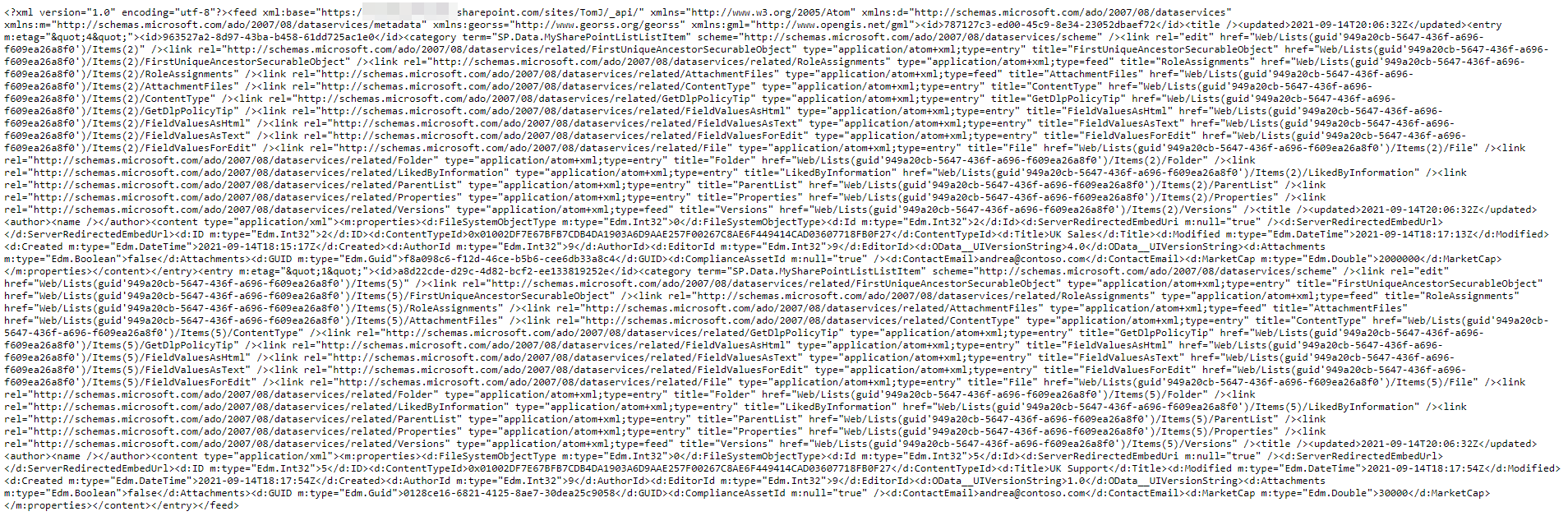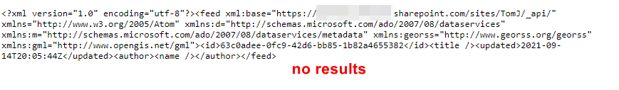 Here, you can see exactly the filter that is going to be applied when we query SharePoint: ContactEmail eq '[email protected]'. All it would take is a quick glance at SharePoint to confirm that there aren’t any items that will fulfill this condition. With a little knowledge of the SharePoint REST API, I can even turn this into an API query I can run in my browser: