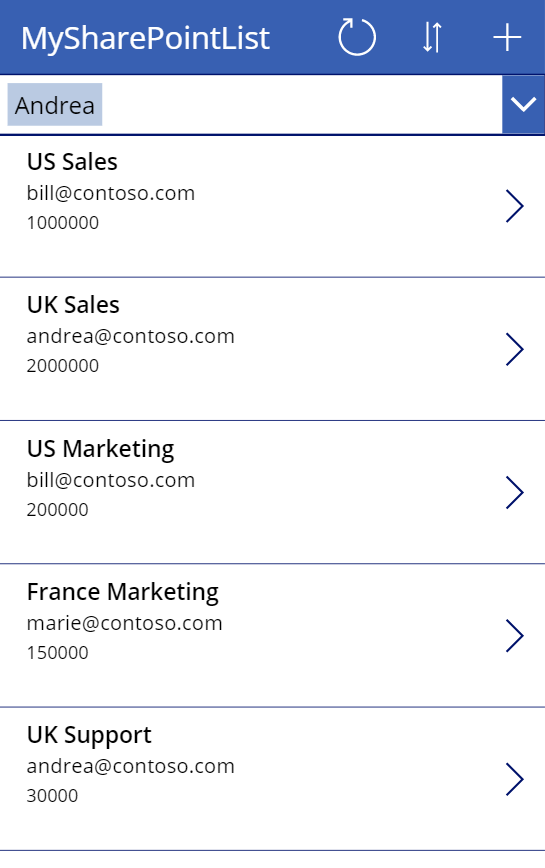 https://<MyDomain>.sharepoint.com/sites/TomJ/tables/949a20cb-5647-436f-a696-f609ea26a8f0/items?$filter=ContactEmail eq '[email protected]'&$top=100