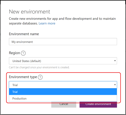 - If you are just trying out the Common Data Service, PowerApps, or Microsoft Flow, then you should create a Trial environment. If you have a PowerApps Plan 2 Trial license, you can create up to two Trial environments. Trial environments will expire after 30 days.