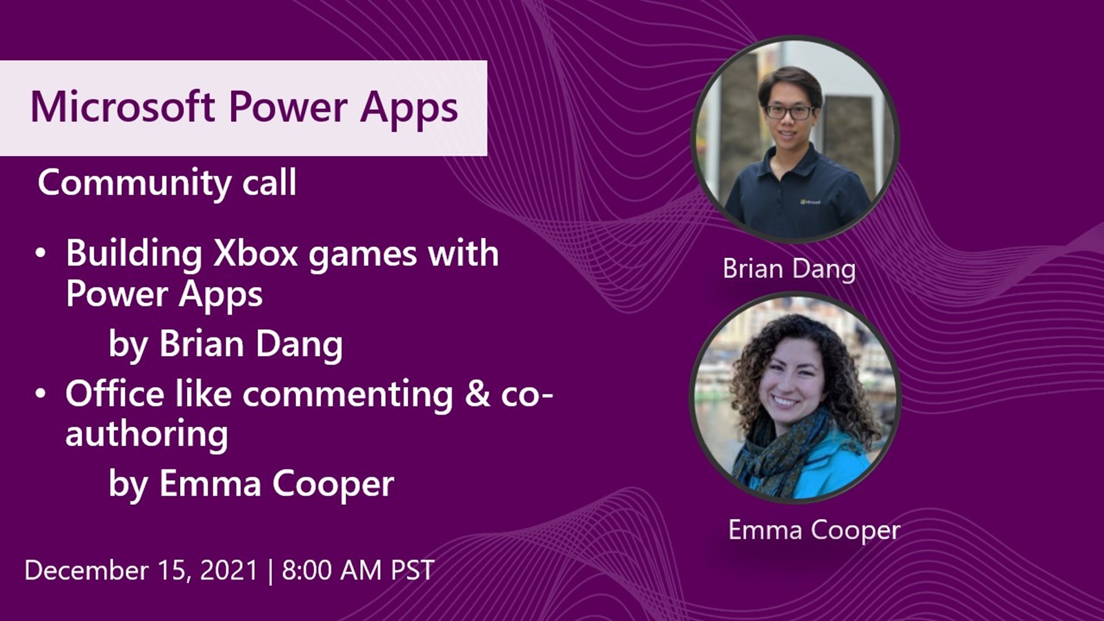 Welcome to the Power Apps community call. These calls are the 3rd Wednesday of each month where we share the latest news about Power Apps, demonstrate tips and tools to help you build amazing Power Apps. In these calls you will meet the Power Apps product team and community experts to get your questions answered. The December Power Apps community call brings us two presenters from the Power Apps product group and their favorite topics: Building Xbox games with Power Apps by Brian Dang and a look at a soon be released preview feature: Office-like collaborative comments in Power Apps by Emma Cooper!