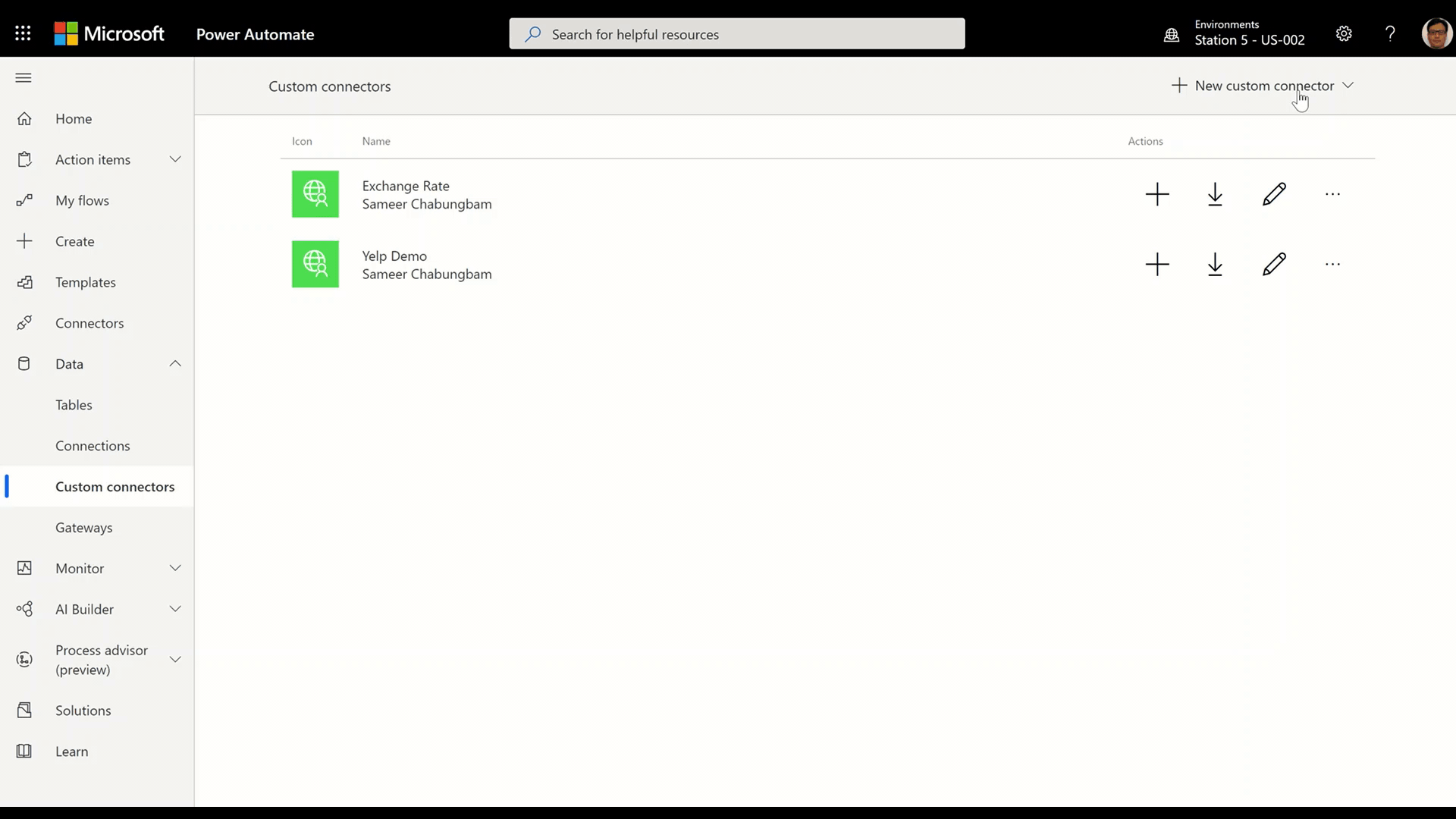 The SAP ERP connector allows integration with SAP ERP systems via BAPIs and RFCs. It requires the on-premise data gateway and the SAP .NET Connector SDK from SAP. Many customers want to integrate with ODATA APIs provided by SA. We published a blog post and a sample SAP ODATA connector on GitHub on how this can be done today. With the integration of GitHub while importing a custom connector, it is now a 2 click experience to get this custom connector (or any other) in your environment. On the custom connector page, just click on “+New custom connector” > “Import from GitHub” and select the SAP-ODATA-Demo connector.