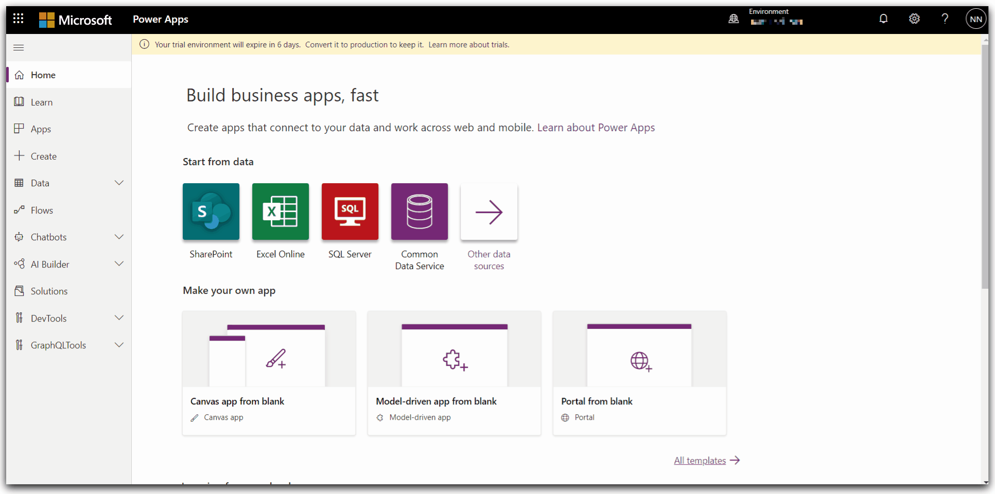 Power Platform admin center is unified admin experience for all Power Apps applications. With this feature, we’re bringing the portal management options in the same view. You can also see information such as how many days a trial portal has, before it expires.