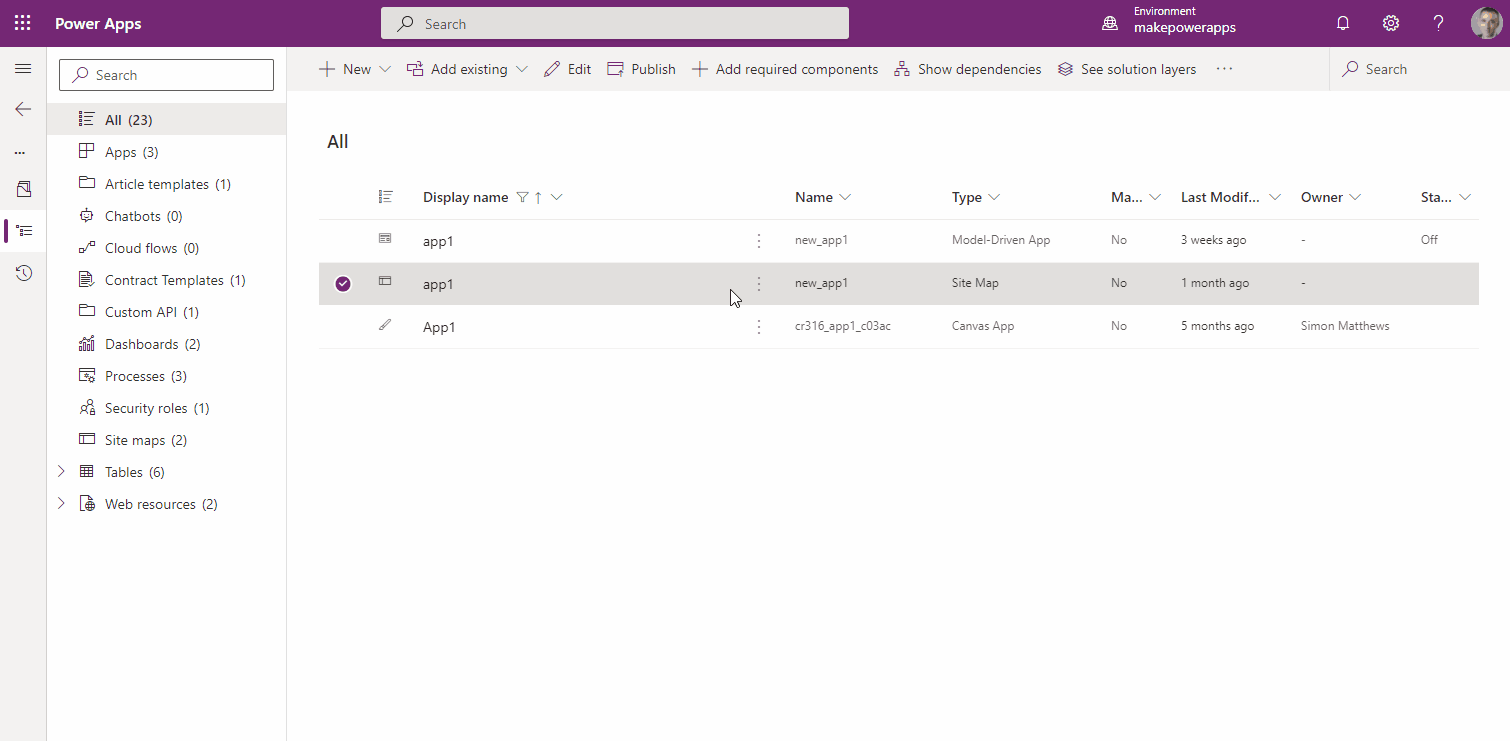 This experience will soon become the default experience on the maker portal, but whilst we’re in preview if you run into any issues, you can disable the preview experience by toggling the switch on the solution list.