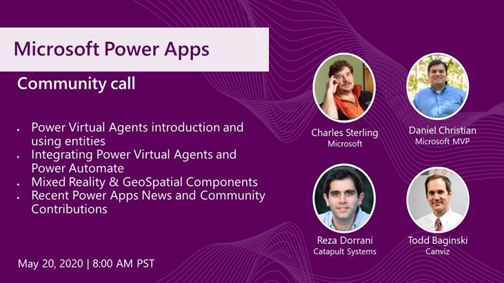 This month our Power Apps community call host, Todd Baginski continues to deliver and brings us some of the most exciting technology to hit the Power Platform. This month Todd will be show casing Mixed Reality with Power Apps, Power Automate integration with Power Virtual Agents and enhancing your Chatbots using entities .