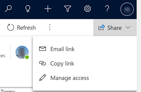 Share records as easy as Office documents. Use the new share button to email a link or copy the link and share it with someone else. A link to the record can only be shared with users who have permissions to access the record currently, but we are working on expanding this in the future.