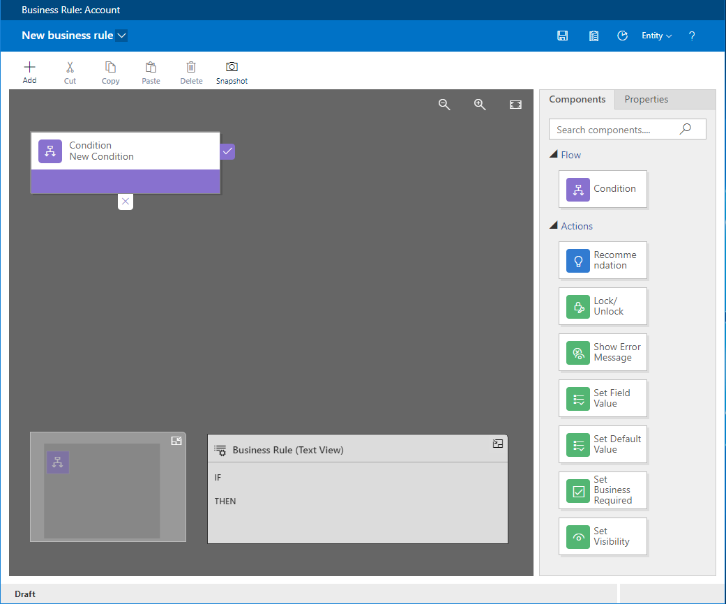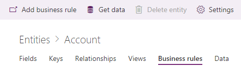 - Click “Add business rule” in the command bar on the top of the screen