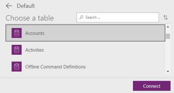 - Under Choose a table, click Accounts, and then click Connect