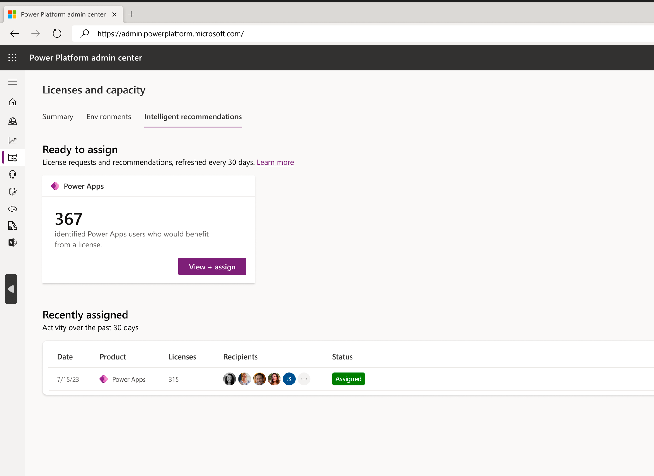 Power Platform admins can now assign licenses via Intelligent Recommendations – now in public preview!