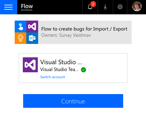 In order for this scenario to work, we would like the person invoking the button flow to provide their connection (credentials) to VSO. It would be far from ideal for the owner for the flow to be marked as the creator of all the bugs. With the new feature, we can now configure the invoker to provide the VSO connection, to do this first save your flow and navigate to the properties page.