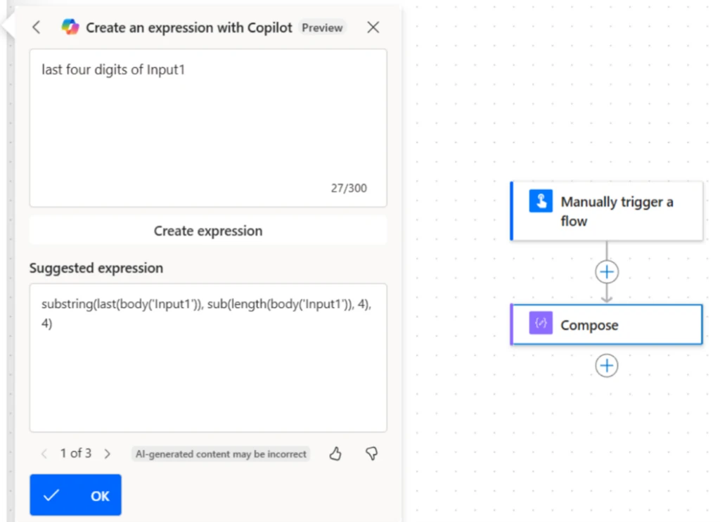 Plus, the new Copilot expression assistant (private preview) helps you build the right expression just by describing the expression you want to build, and by referencing the dynamic data in the flow by its name. If you are interested in trying out the new experience, please sign up here.