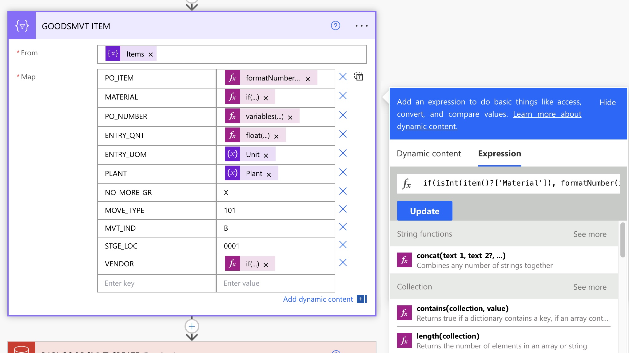 The expression language in Power Automate is based on Logic Apps functions. To enable more efficient processing of SAP data, we have added several new functions: