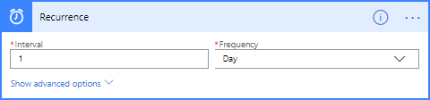 - We want to run this flow every day, so we will use the Recurrence trigger that will ensure to instantiate it each day.