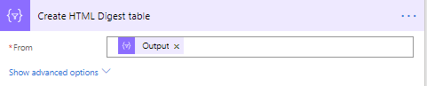 - Next, we want to use the Create HTML table action that will convert our array into an HTML table.