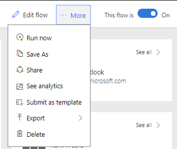 - To run our test harness, we simply click on the …More dropdown and then select Run now. Alternatively, we can also pull out our mobile device and open the Microsoft Flow mobile app and click our virtual button.