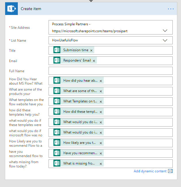 You can see below how I mapped my fields, with the goal of loosely tying them to the questions in the forms. This keeps my dynamic content more clean for selection.