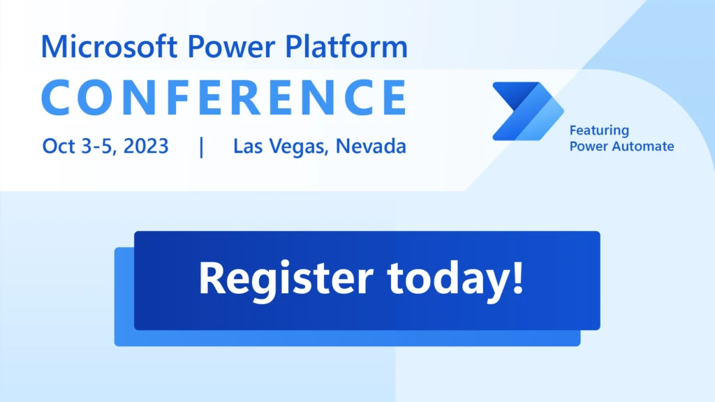 Join us at the second annual Power Platform Conference, sponsored by Microsoft, this October in Las Vegas! Discover, connect, and explore in-person across keynotes, sessions, breakouts, and more – dedicated to Microsoft Power Platform products (Power Apps, Power Automate, Power BI, Power Pages, and Power Virtual Agents) and featuring the latest on AI-infused experiences, including Copilot. You don’t want to miss this unique opportunity to learn directly from leaders and community experts!