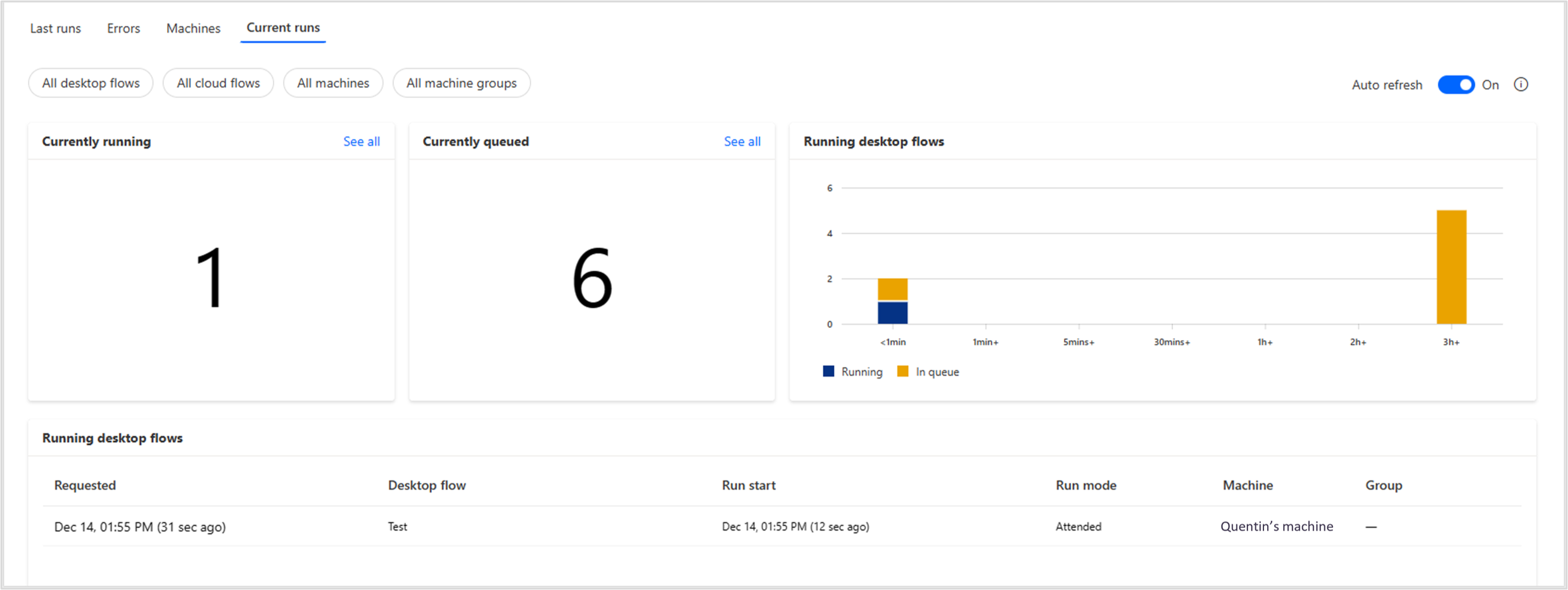 Current runs: monitor your queued and running desktop flows