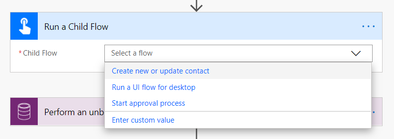 Next, you need to pick the child flow that you created above. As a reminder, you will only see the flows you have access to that are in solutions and that have one of the three above triggers.