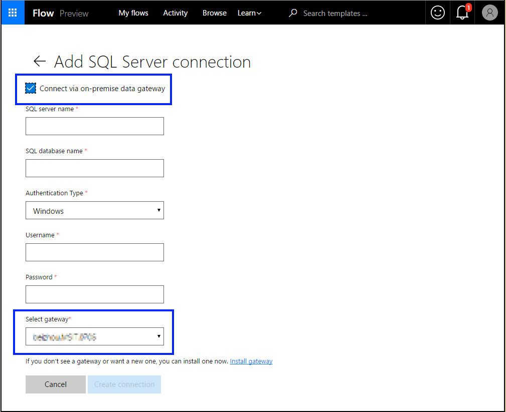 This week, we are excited to announce on-premises connectivity for Microsoft Flow. This can be achieved by using the on-premises data gateway, that allows you to establish secured connections and integrate them with your flows. At launch, the gateway functionality will be supported by SQL Server. As part of our business application platform, this gateway can be used across Power BI, PowerApps, and Microsoft Flow to deliver dashboards, reports, applications and flows leveraging on-premises sources.