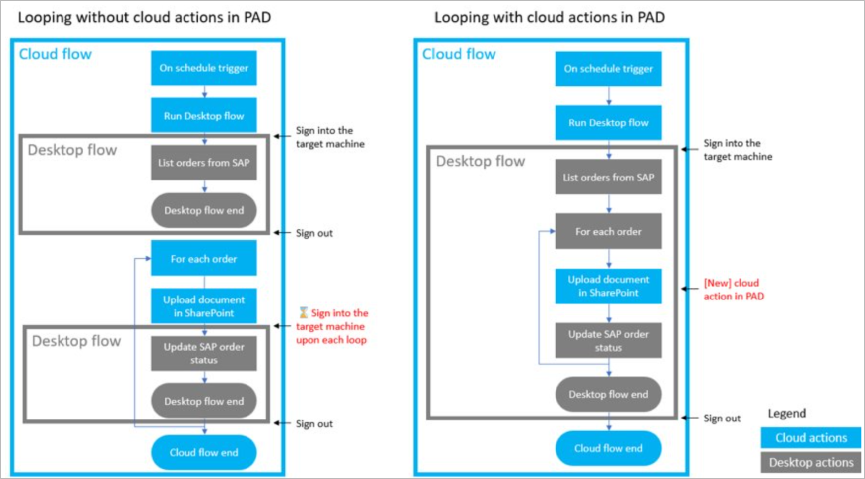 The ability to have all cloud actions available through the designer eliminates the need to separate logic between cloud and desktop flows, considerably reducing development time and potential logic errors that might occur.